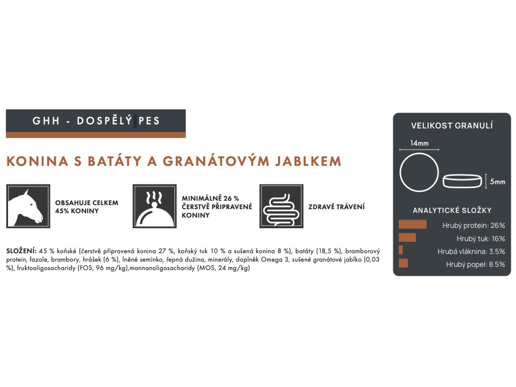 Každá receptura obsahuje minimálně 26 % čerstvě připravených vysoce kvalitních bílkovin. Nejkvalitnější čerstvě připravené maso se vaří při mírné teplotě 82 stupňů, aby byly chráněny cenné bílkoviny, zvýšila se stravitelnost a zvýraznily se chutě.