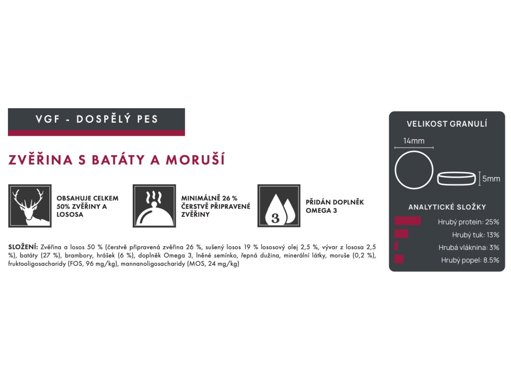 Každá receptura obsahuje minimálně 26 % čerstvě připravených vysoce kvalitních bílkovin. Nejkvalitnější čerstvě připravené maso se vaří při mírné teplotě 82 stupňů, aby byly chráněny cenné bílkoviny, zvýšila se stravitelnost a zvýraznily se chutě.