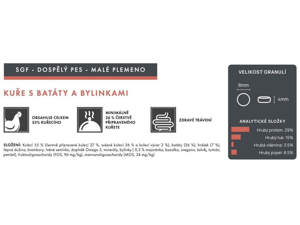 Každá receptura obsahuje minimálně 26 % čerstvě připravených vysoce kvalitních bílkovin. Nejkvalitnější čerstvě připravené maso se vaří při mírné teplotě 82 stupňů, aby byly chráněny cenné bílkoviny, zvýšila se stravitelnost a zvýraznily se chutě.