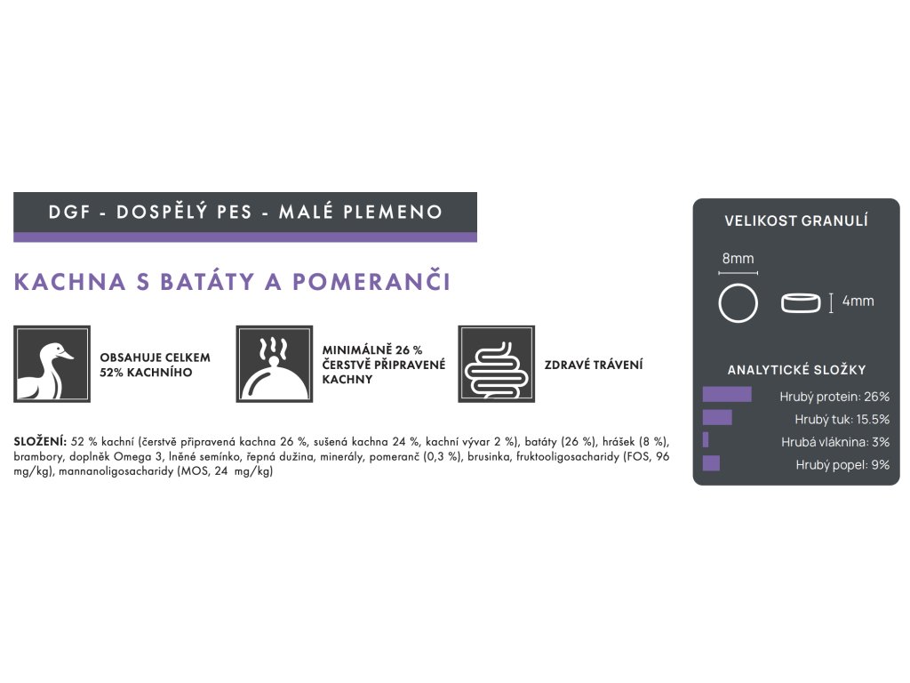 Každá receptura obsahuje minimálně 26 % čerstvě připravených vysoce kvalitních bílkovin. Nejkvalitnější čerstvě připravené maso se vaří při mírné teplotě 82 stupňů, aby byly chráněny cenné bílkoviny, zvýšila se stravitelnost a zvýraznily se chutě.