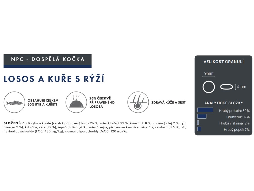 Obsahuje omega 3 esenciální mastné kyseliny pro zdravou kůži a hebkou a lesklou srst.